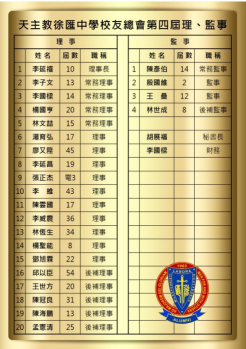 校友會第二十一屆(復會後第七屆理監事會補選後名單)